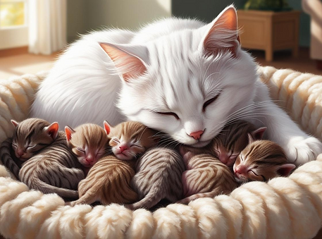 A gatinha Lila perdeu todos os seus filhotes, alguns na hora do parto e outros algumas horas depois. A tristeza era visível, ela não comia, não interagia e apenas se isolava em um canto.